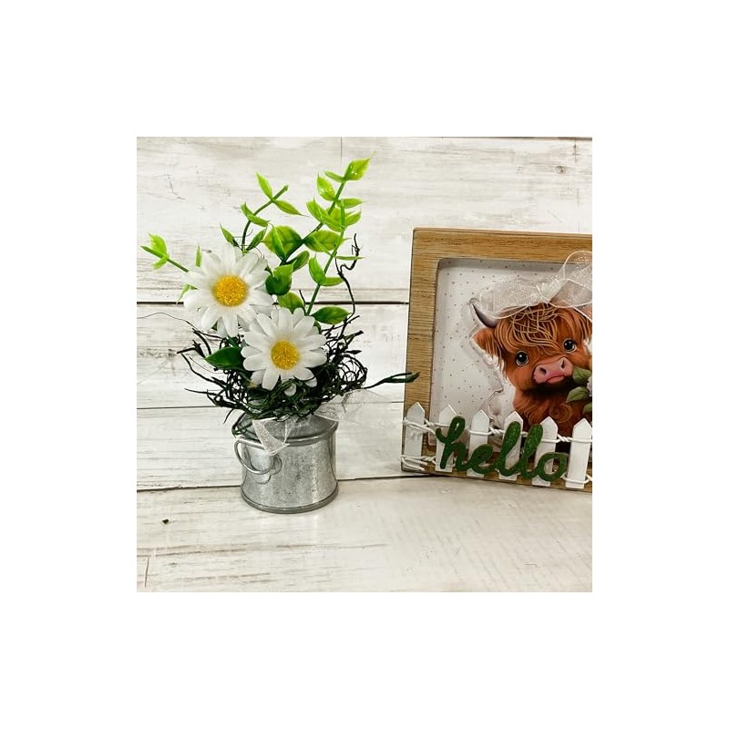 ITEM: Spring Decor - Daisy Sunshine Highland Cow Milk Can Floral 2pc DETAILS: Wood and paint/stain construction with designer acrylic images and coordinating embellishments. Milk can filled with mini daisy. See picture for details. SIZE: Milk Can - 5 x 1.5 x 1.5-inch approx. Highland Cow - 5 x 4 x 0.25-inch approx. MFR: Agape Gifts Designs PLEASE NOTE: Part of the charm of a handmade item is that it can be slightly different form the picture(s) presented in this listing. Thank you for your understanding. Agape Gifts Designs are handcrafted decor & gifts made with quality materials. This item may be listed on multiple channels/websites and may sell out before we can adjust the listing. No custom orders accepted on this item. First come, first served.