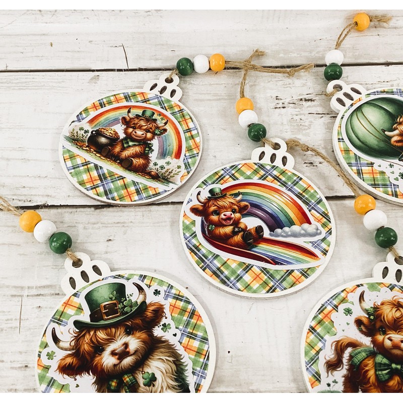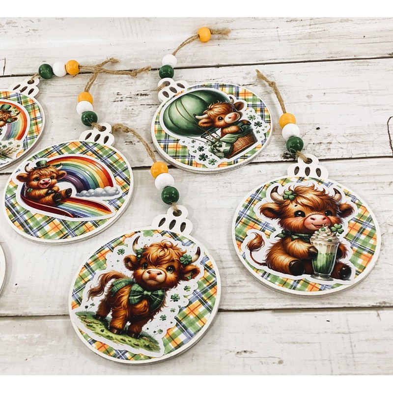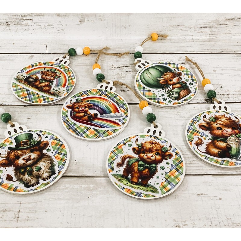 AGD St Patrick's Decor - Cute Highland Cow Ornaments 6pc Set
