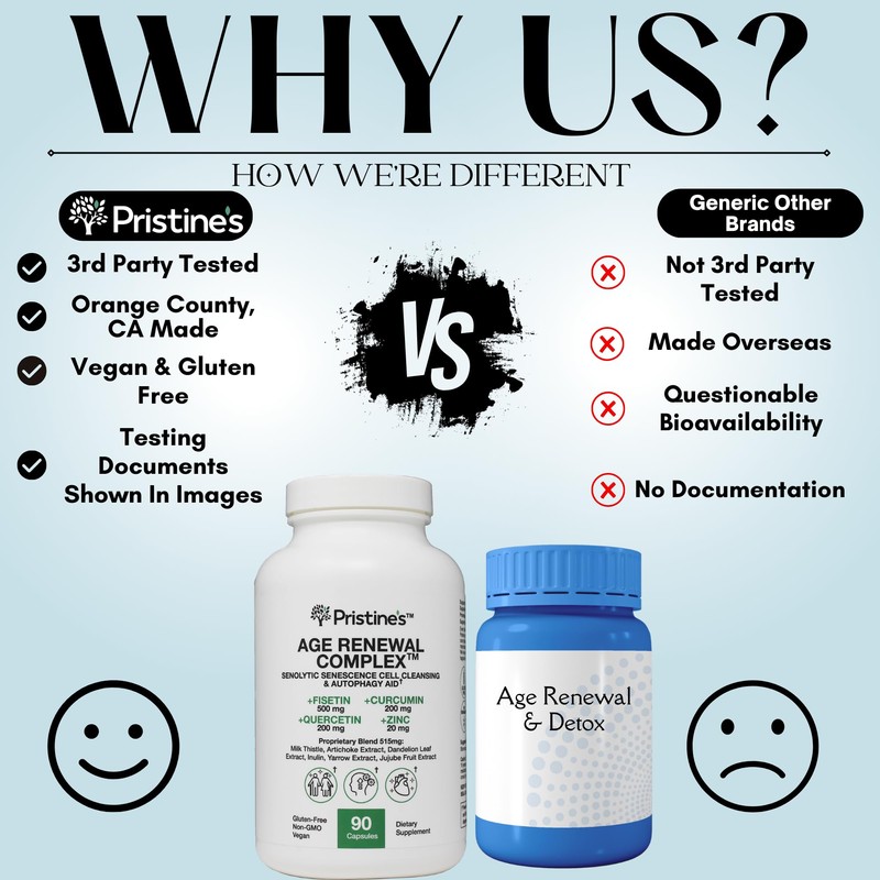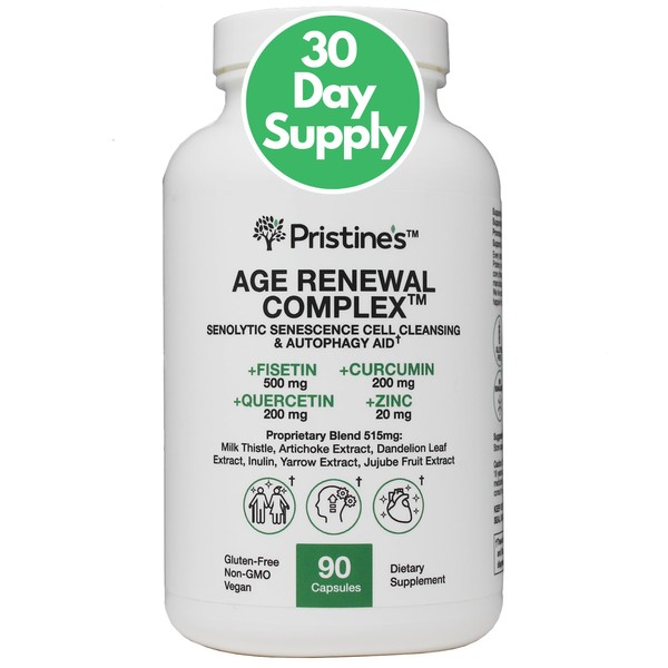 PRISTINE'S Age Renewal & Detox Supplements 90 Capsules 30 Day Supply - Fisetin, Quercetin, Curcumin, Zinc Supplements - Energy & Anti Aging Support - Heart, Skin, & Overall Wellness Support
