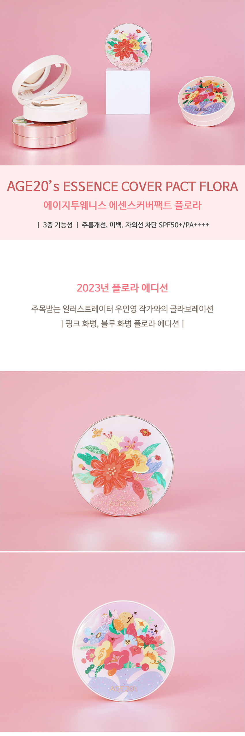 Age20s Age20s Essence Cover Pact Flora Edition Refill (2), Flora No. 21 Refill (2) / 에이지투웨니스 에이지20s 에센스 커버 팩트 플로라 에디션 리필2개, 플로라 21호 리필2개