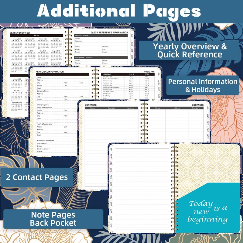 - PROFESSIONAL CONTENT DESIGN: Measuring 6.22" x 8.54", the planner 2025-2026 with quick reference information, annual overview, calendar and holidays, contacts pages, and extra notes pages. With a simplified layout for ease of use, it suits busy people, students, and teachers for tracking daily affairs