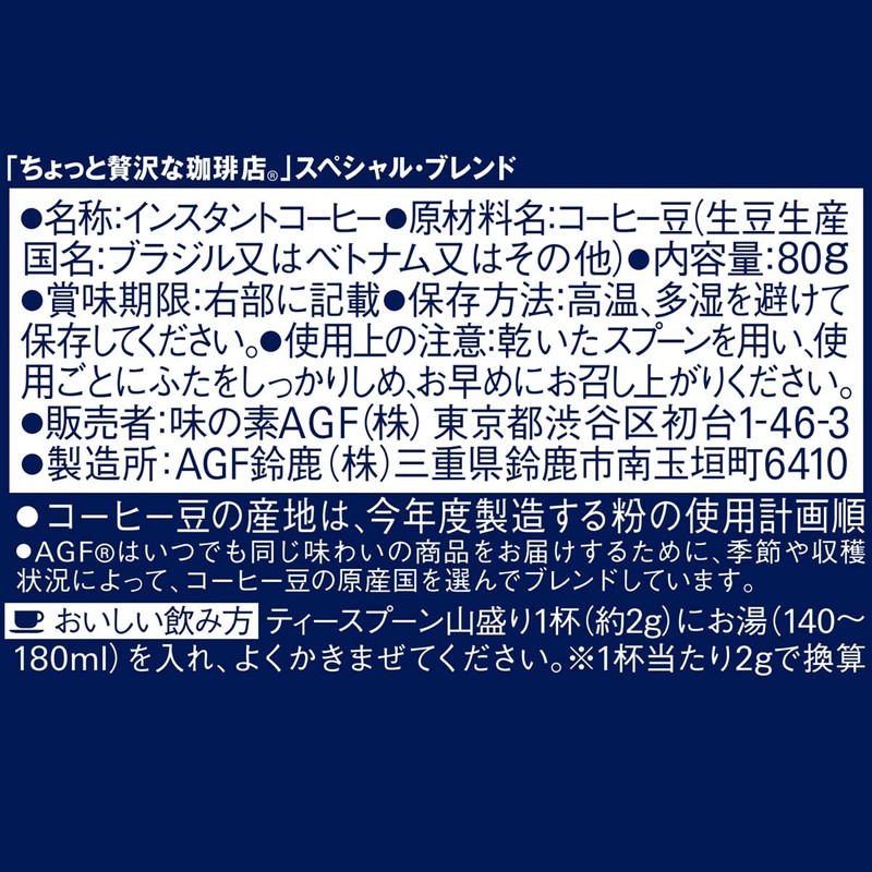 AGF Special Blend Bottle, 2.8 oz (80 g), Instant Coffee, Refill Bottle, 1.0 Pieces