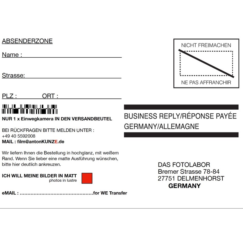 - Simply take photos - send film to the laboratory by post - all postage costs incl.