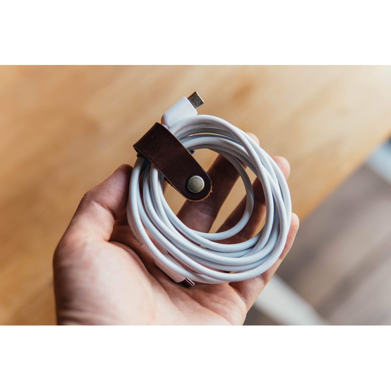 - A simple clip made of thick and durable leather with antique gold buttons. Bundling charging cords for carrying or bundling wires around your desk. Can be used freely for a wide range of applications