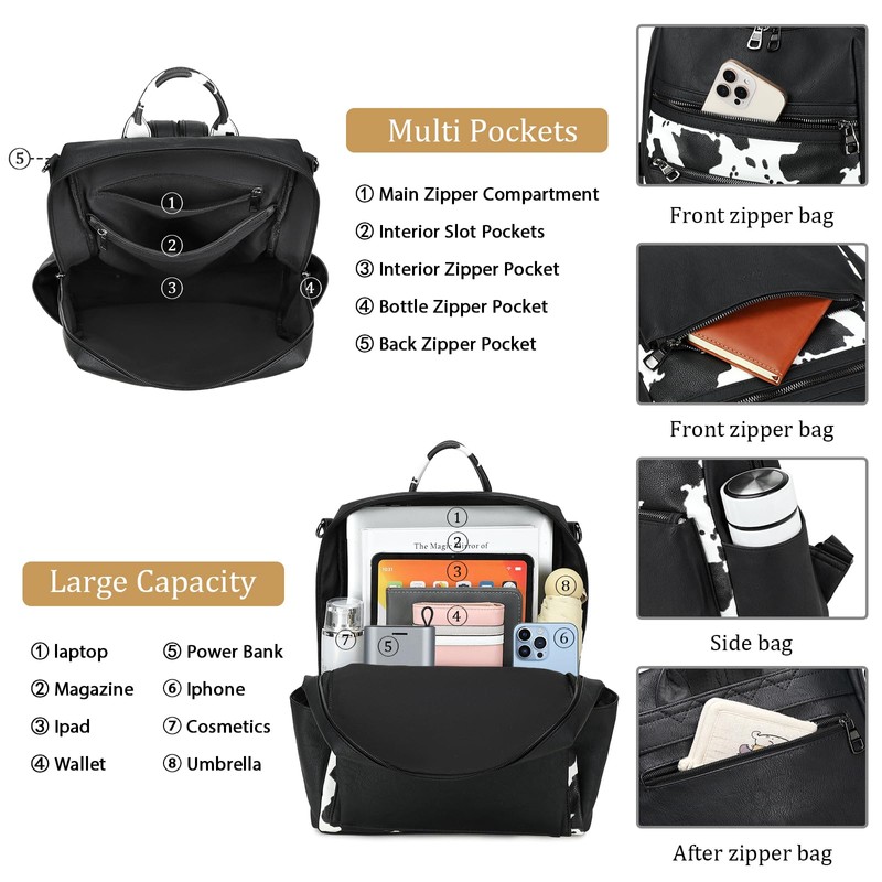 - 【Upgrade Zipper & High-Quality PU Vegan Leather Backpack】Women backpack purses are made of soft & durable faux leather, metal accessories, canvas long shoulder strap and fabric lining. This backpack has a smooth and durable upgrade zipper closure, and each seam is reinforced for durability. No worry for the zippers are easy to get break after daily usage.