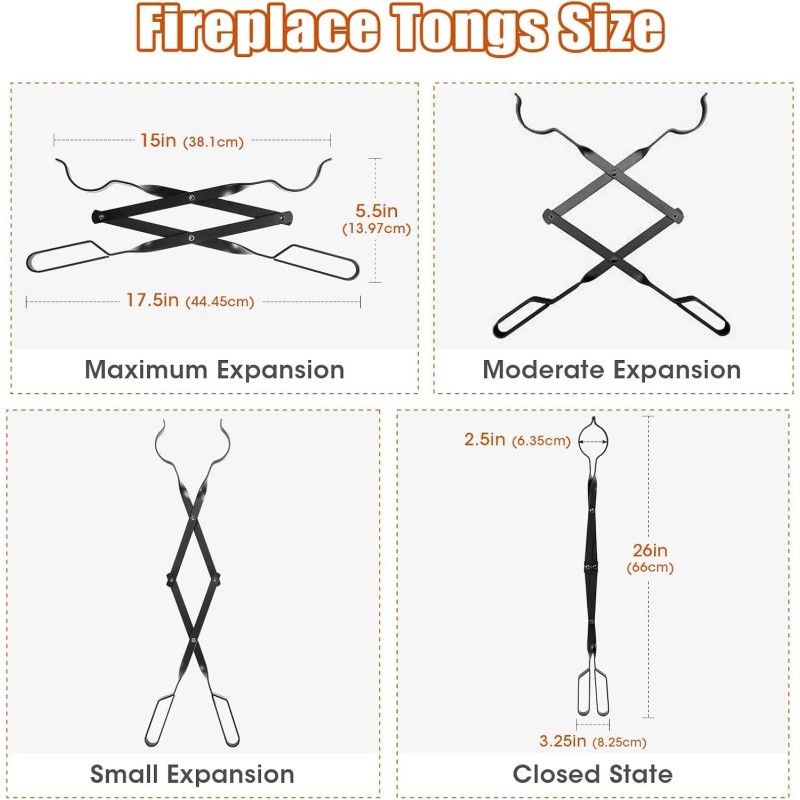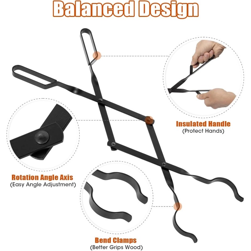 - 【Easy to clamp】The unique scissor type firewood tongs design and curved end design make the whole fireplace tongs can clamp the wood block more perfectly. After clamping the wood block, you can easily control the hot logs. The firepit tongs rivets are firm and will not slide loosely.