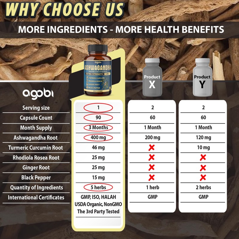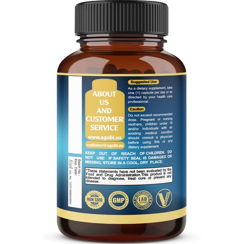 - Tested! Agobi Herbal Ashwagandha Extract Complex from pure herbs is made by cGMP, ISO, and FDA-registered manufacturer. Quality assured by USA lab.