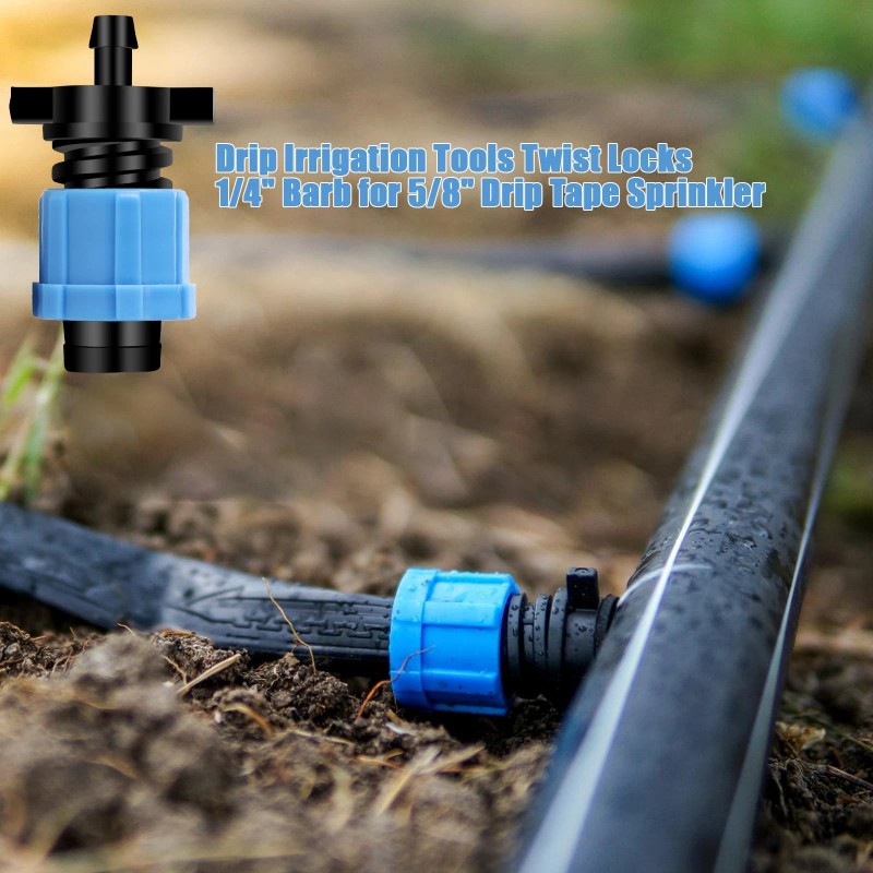 Connectors Drip Tape Fittings Drip Tape Irrigation Kit Irrigation Tubing Connectors Coupling Barbed Locking Fitting 1/4" Barb for 5/8" Drip Tape Sprinkler