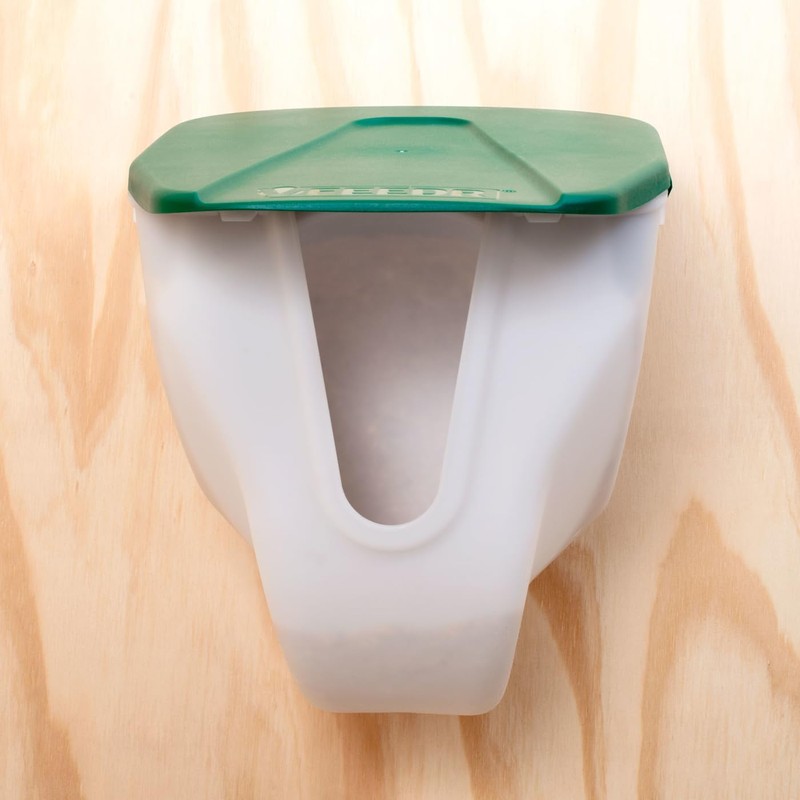 - Product details: 1x Agrarflora V-Feedr poultry feeder, 1x wall bracket, material: PP plastic, colour: green, white, contents: 2.5 kg, dimensions: approx. 22 x 22 x 27 cm, weight: approx. 250 g.