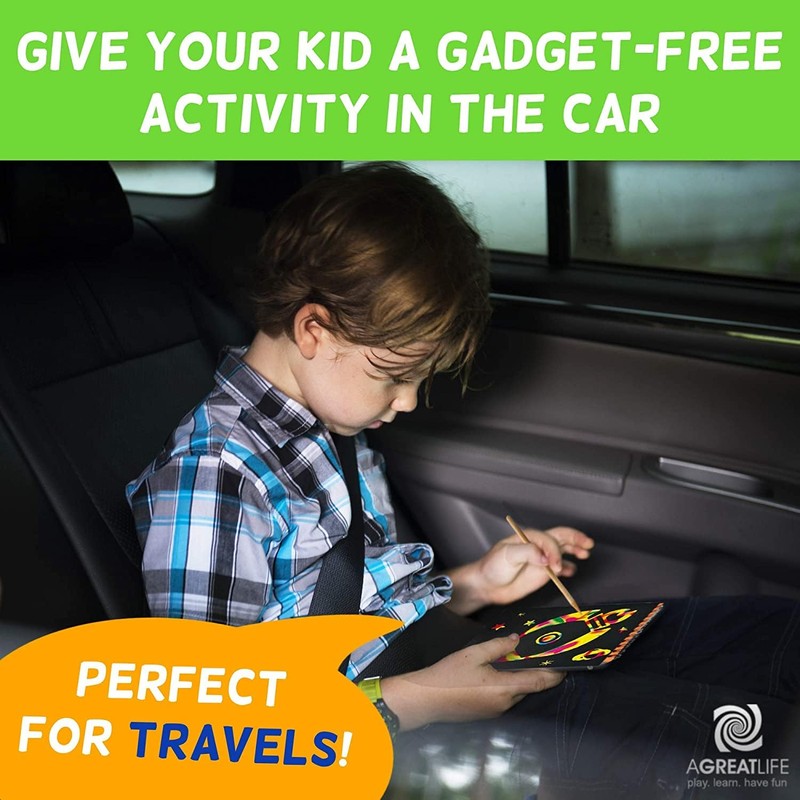 - Get ‘Em Busy & Quiet. Most kids have moments when they have excess energy that no matter what you say they just won’t slow down. AGreatlife have finally come up with a timely solution! Channel your child’s high energy by keeping them busy and quiet doodling on our non-messy Rainbow Scratch Art Notebook while waiting at the restaurant, on long plane rides, family trips, or at the doctor’s office which you later can display on the fridge!