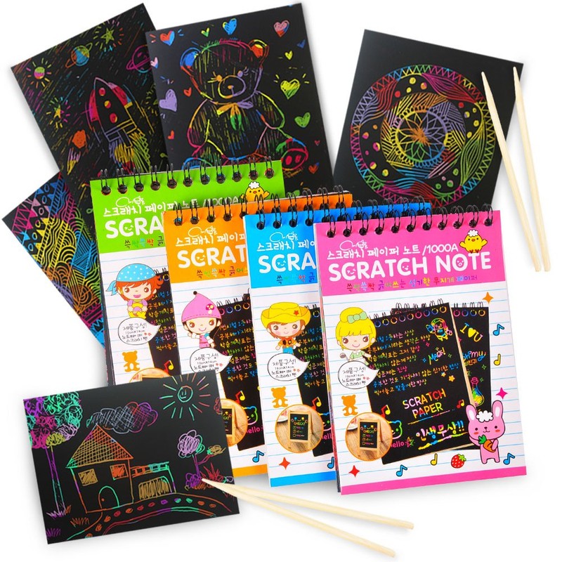 - Perfect Party Favor! Awaken hidden creativity by getting these scratch off paper as alternative to candy in a kids' goodie bag or party favor! Each of these kids crafts colorful notebooks are packaged in high quality craft box sealed with a pretty ribbon, it will surely be happily received, your kids can’t help but gain new friends at school. Or send heartfelt notes in the kids lunch box and backpack.