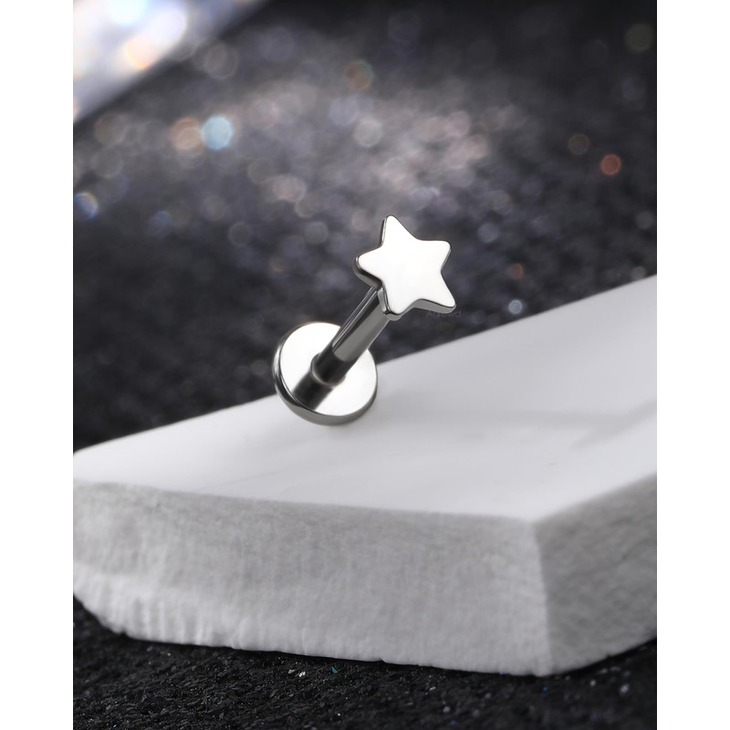Agrewd Minimalist G23 Solid Titanium Cartilage Earrings Stud 16G Star Threadless Push in Helix Tragus Earrings Flat Back Tragus Medusa Piercing Jewelry Surgical Steel Hypoallergenic