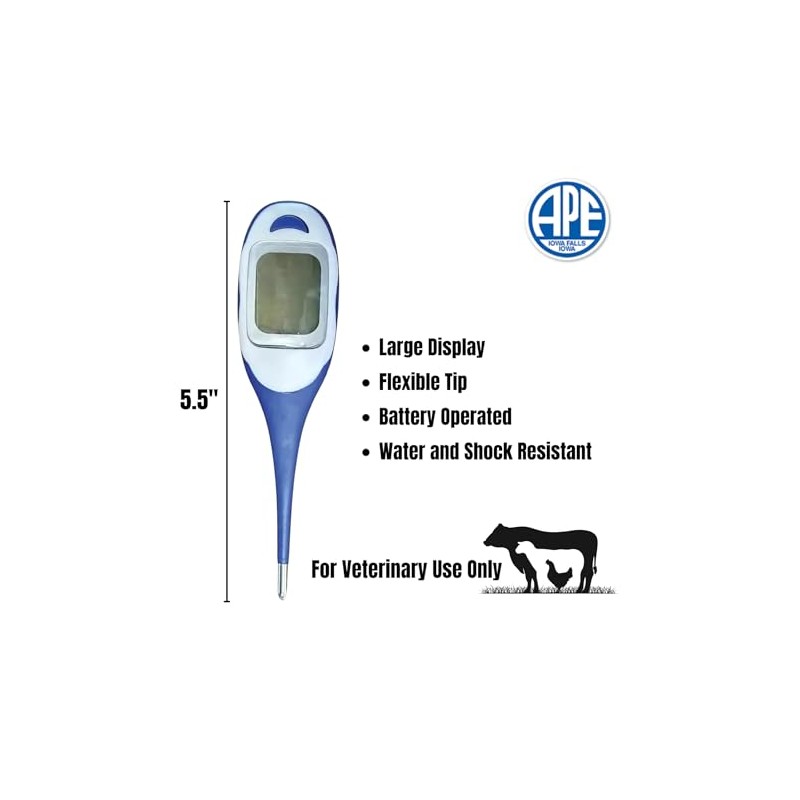- User-Friendly Design: Features a large LCD display and flexible tip, allowing for easy temperature readings and comfortable use during rectal measurement for pets and livestock.