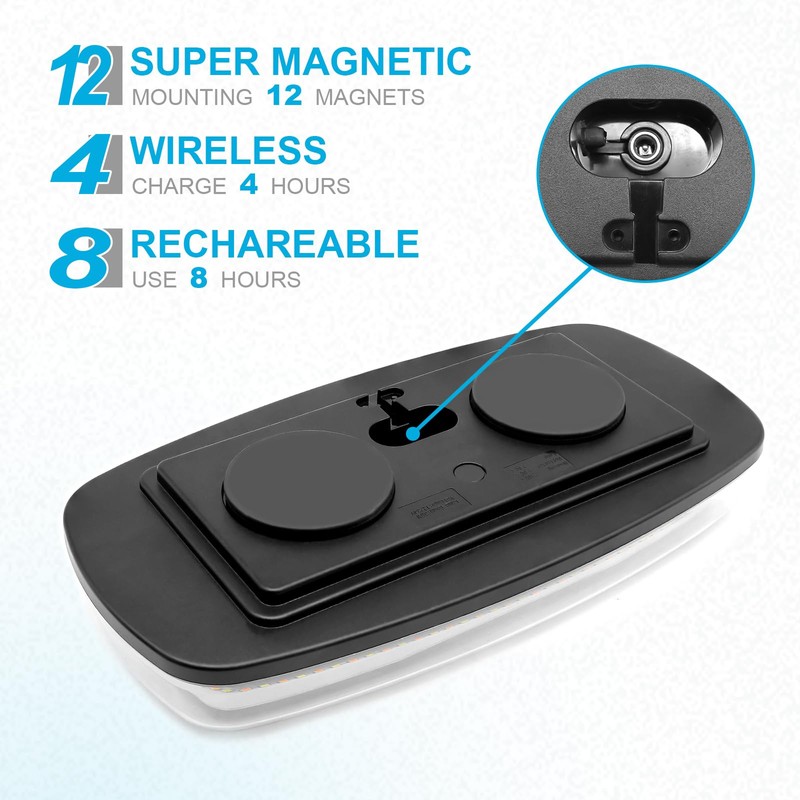 - 【INSTALL IN SECONDS】2 x 6 N38 magnets provide a pull force of 60 pounds, with enough magnetic force to be adsorbed on the roof of the truck; simply place the light on the roof and plug it into the 12V socket; when not in use, just remove the light by hand—no tools needed, very simple