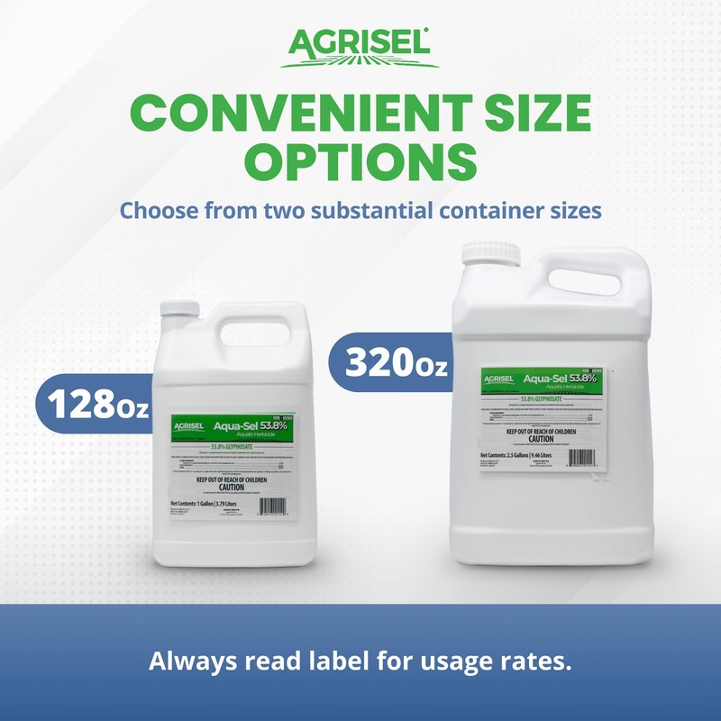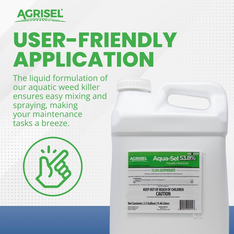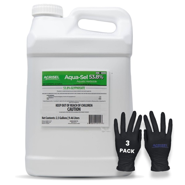 Agrisel Aqua-Sel 53.8% Weed Killer, Broad-Spectrum Systemic Formula, Fast-Acting on Aquatic Weeds, Easy Mix & Spray, Pet Safe, Includes 3-Pack of Agrisel Protective Gloves, 320 Ounces