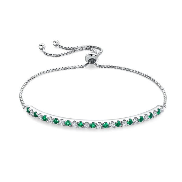 AGRULE 14K White Gold Plated Sterling Silver Emerald Tennis Bracelet 2mm Created Green Stone Tennis Bracelet Adjustable Chain Tennis Bracelets for Women