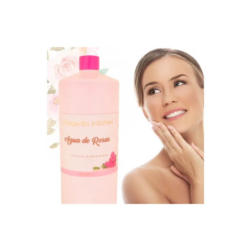 1 agua de rosas con 1000 ml de producto, envasado en PET con taparosca de la marca Magenta Women. (Exclusivo de uso cosmético)