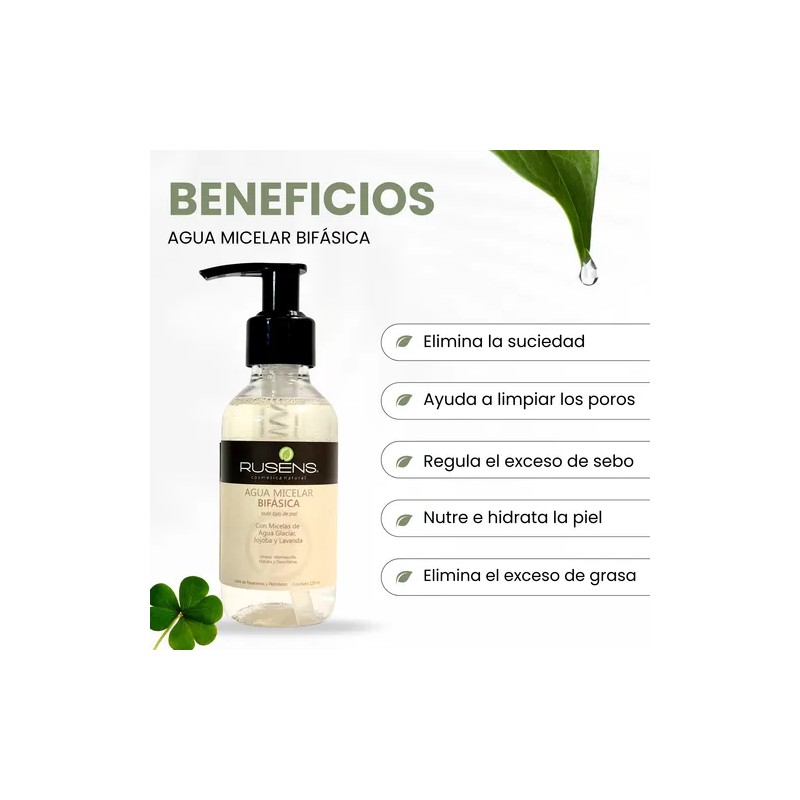 Agua Micelar Bifásica Rusens, Desmaquilla, Limpia, Hidrata