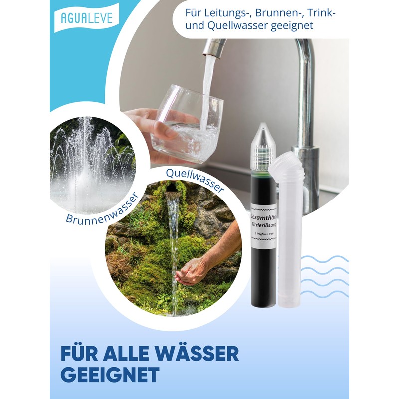 - Versatile: suitable for all waters (tap water, well water, drinking water and spring water). For use in the home, kitchen and garden. For determining the water hardness for: fully automatic coffee machines (to program the hardness), softening systems/water softening systems/descaling systems (to check the function and adjust residual hardness), aquarium, pond and pool.