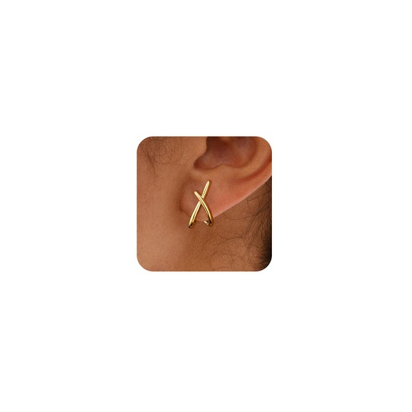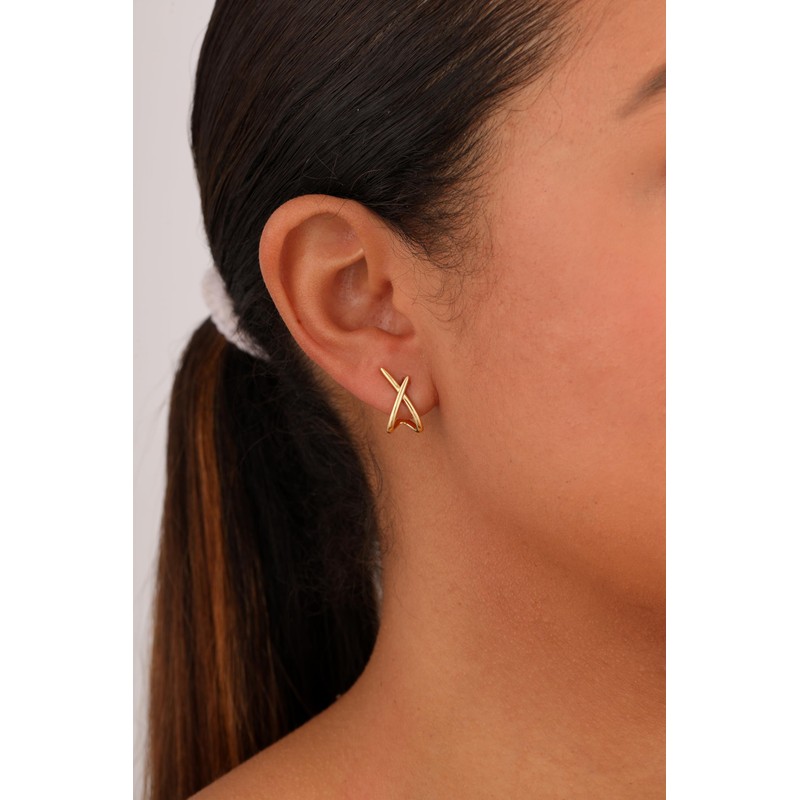 - Gold Earrings: These gold stud earrings are the elevated staple your collection needs. Their criss-cross design adds a little something extra that makes them stand out. Wear them on their own or pair them with Mini Huggie Hoops for a stacked look. You can wear all day without any pressure