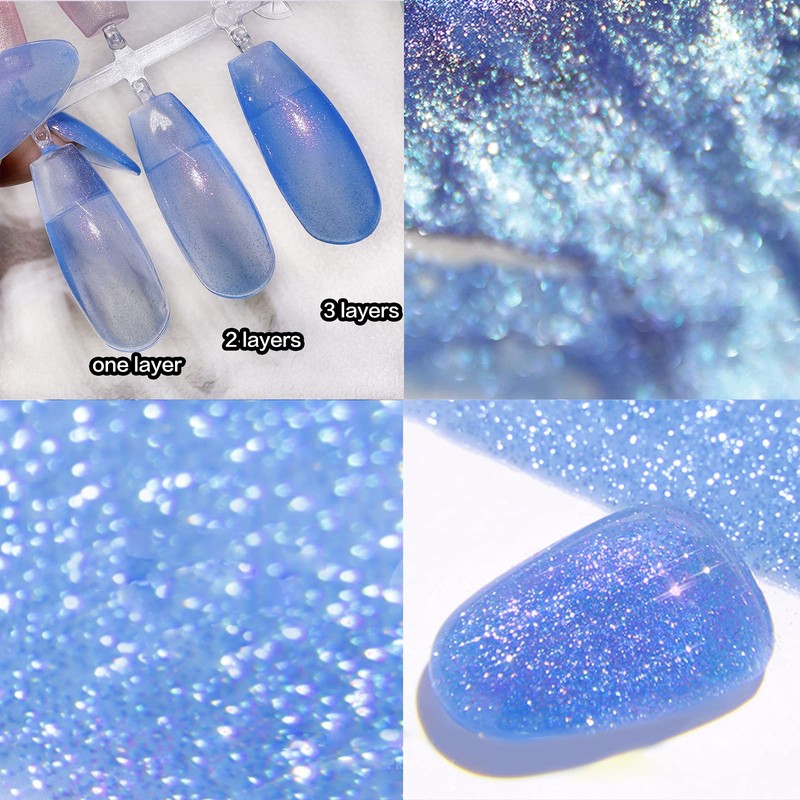 AHAMIOU Nail Polish Holographic Pink Shimmer Gel Nails Glitter Set Sparkly Shiny Reflective Nail Polish Kit Neutral Sheer Nude Gel Polish Diamond Gel for Home Salon DIY,Baby Blue