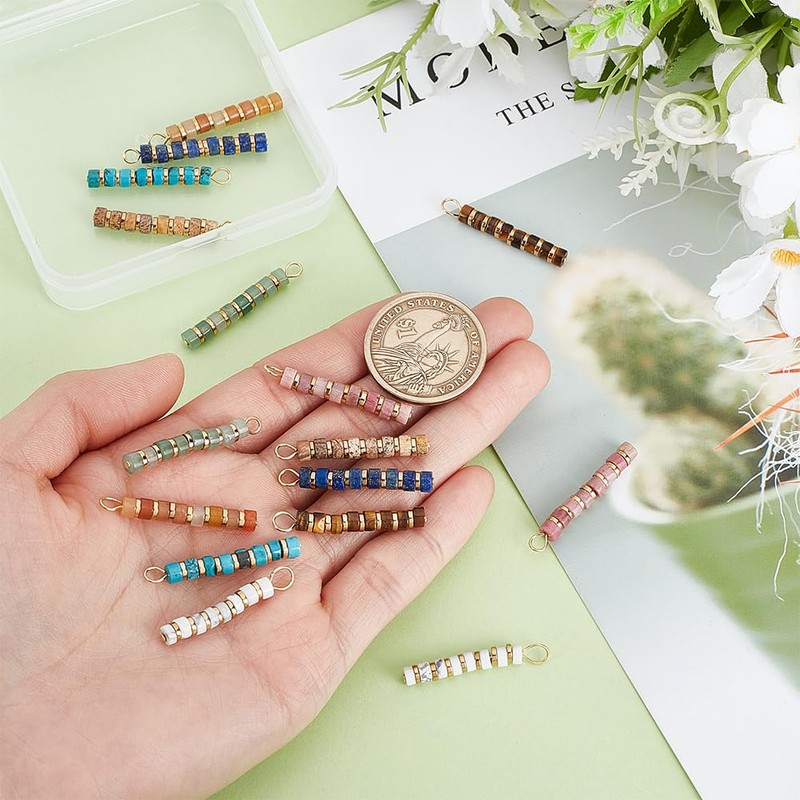 - Vorteilspackung:Sie erhalten 16 Stück Anhänger aus natürlichem Edelstein in 8 Stilen, mit 32.5mm langen, 4mm breit, 4mm dick, Bohrung:3mm , ausreichende Menge und richtige Größe für Sie, um Ihre DIY-Bastelarbeiten zu erfüllen, Sie können sie selbst verwenden, Sie können sie auch mit Ihren Freunden teilen
