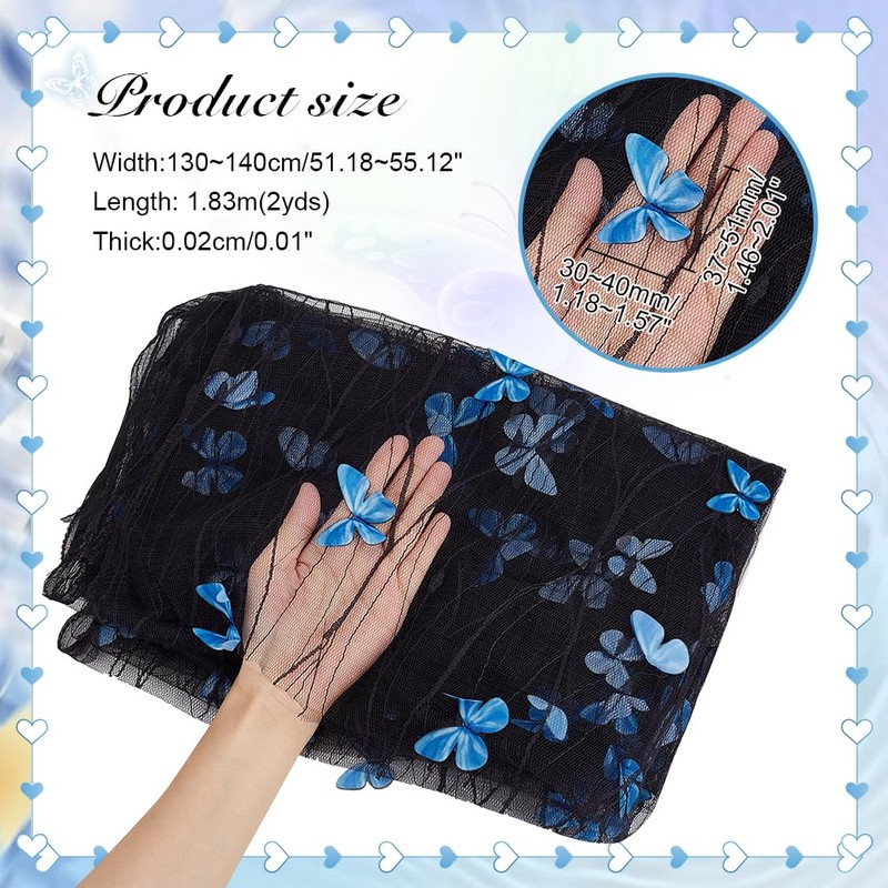 - Package Include: You will receive 1 pc polyester butterfly embroidery fabric, about 2 yards long, 51.18~55.12 inches (130~140 cm) wide, 0.008 inches (0.2 mm) thick, the butterfly measure about 1.18~1.57x1.46~2 inches (30~40x37~51 mm). Whether you are designing a wedding dress, fashion accessories or home decor, this butterfly lace fabric will add an elegant and unique touch.
