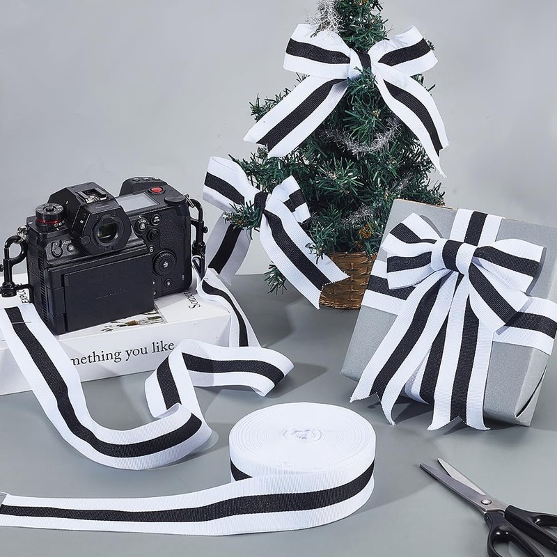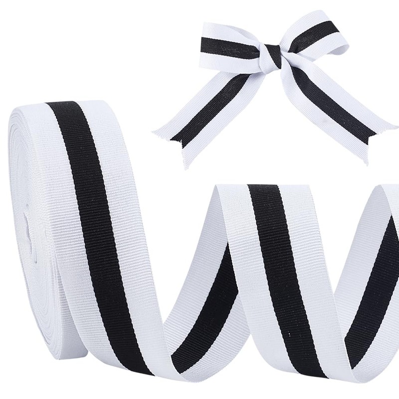 - Box contents: you will receive 1 roll of black and white striped polyester grosgrain ribbon, total 25 yards (approx. 22.86 metres) long and 1-5/8 inch (40 mm) wide. The generous length and moderate width meet diverse requirements for various decorations, crafts, and gift wrapping