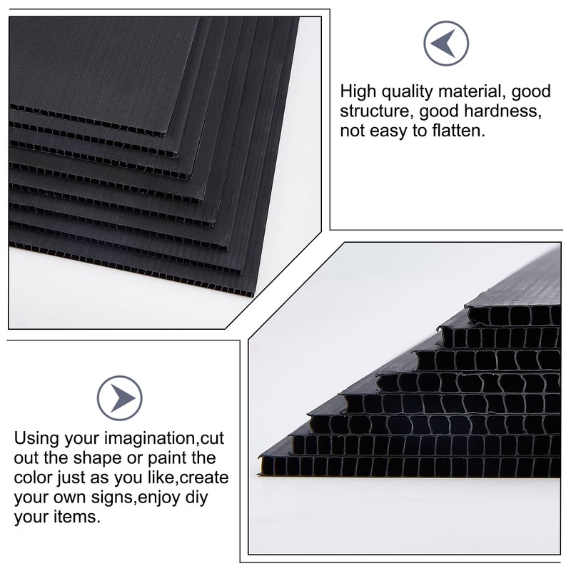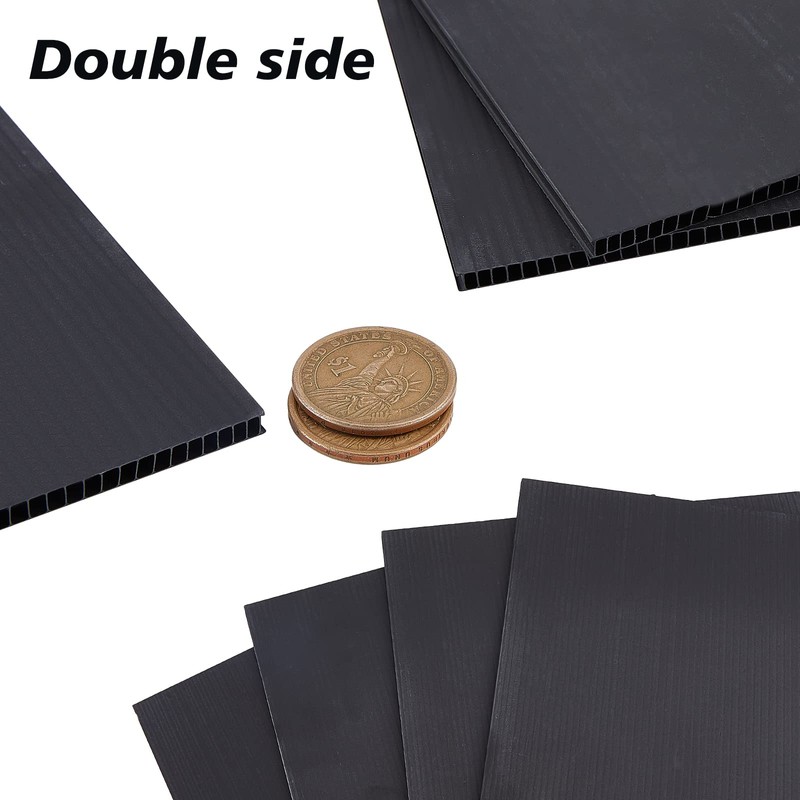 • Quantity Size: You get 8 sheets of black corrugated plastic sheets, they measure about 11.02" (28cm) wide, 8.66" (22cm) long, 0.16" (0.4cm) thick, sufficient quantity and the right size can Meet your different needs.