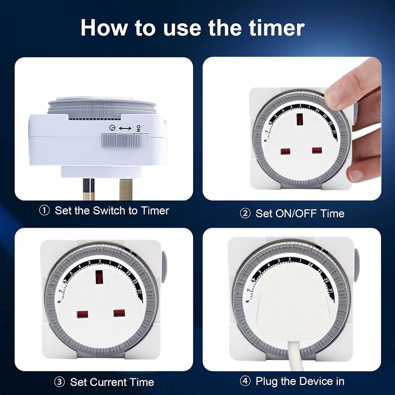 The digital timer plug sockets allow you to set your appliances to turn on/off 24 times a day, automatically switching them on and off according to your schedule.