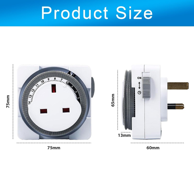 - Durable & Safe: 13A/3120W, plug timer made from fireproof material to provide reliable safety, compact size for UK power sockets, this robust timed plug socket will last for many years without needing to be replaced