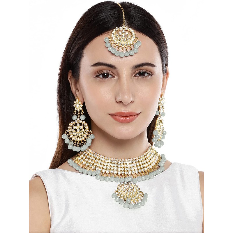Aheli Indian Traditional Maang Tikka with Kundan Necklace Earrings Set Ethnic Wedding Party Designer Jewelry for Women