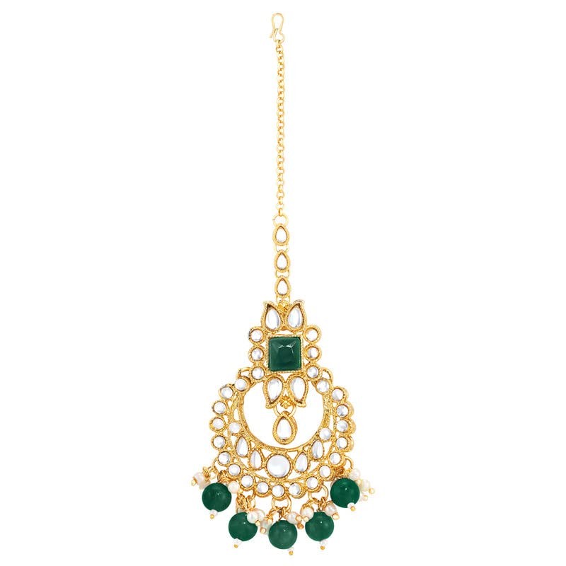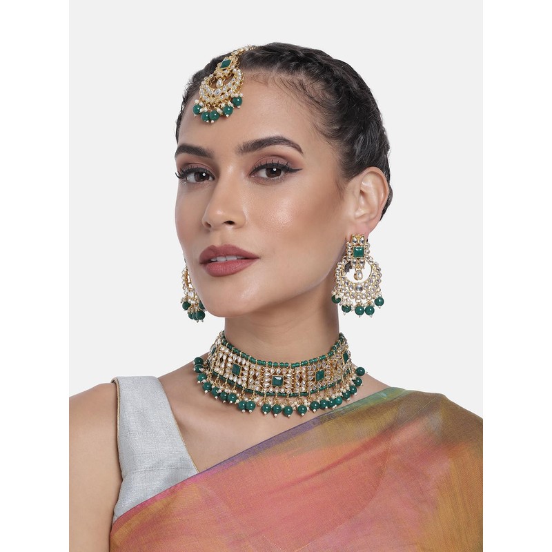 Aheli Traditional Gold Plated Kundan Choker Necklace Chandbali Earring & Maang Tikka Ethnic Jewelry Set Gift for Women Green