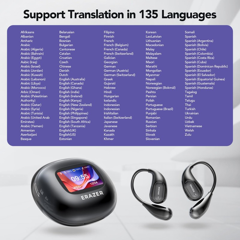 AHEYE XP7 AI Translation Earbuds, 3-in-1 Language Translator Earbuds Real Time in 135 Languages & Accents with APP, OWS Open Ear Bluetooth 5.4 Headphones with Touch Control Screen for Travel Learning