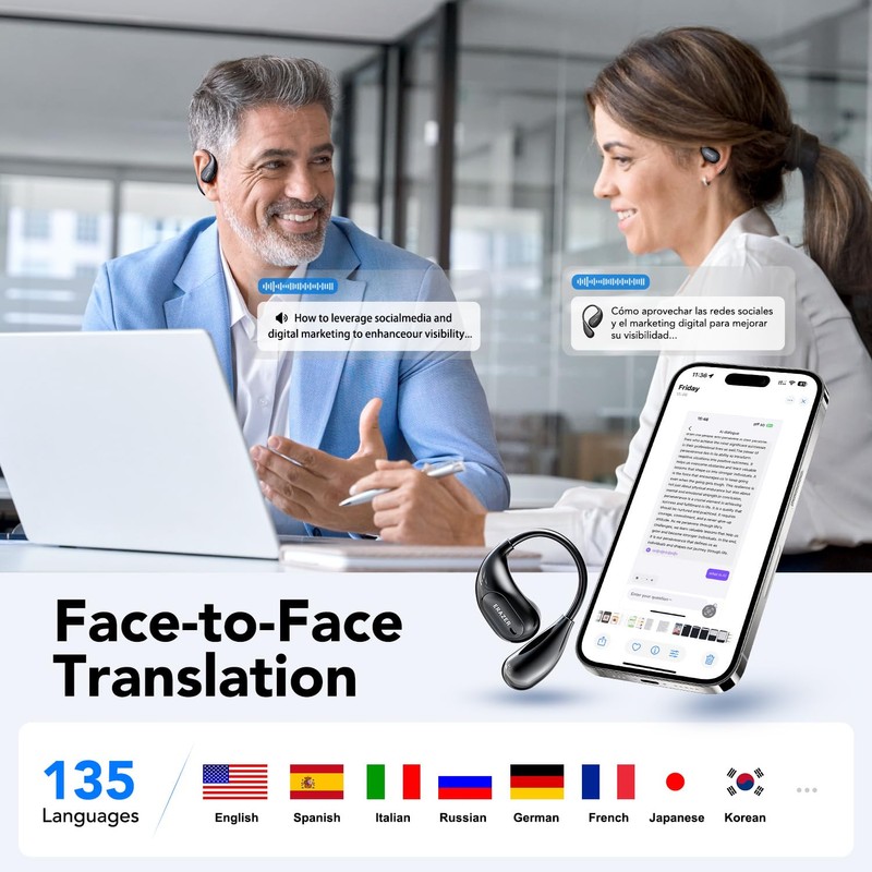 - 3-in-1 Translator Earbuds: XP7 translation headphones supports two-way real-time translation, providing accurate and authentic translations. It supports downloading APP on your mobile phone and using headphones to achieve real-time online voice translation in 135 languages, such as Arabic, Chinese, Czech, English, French, German, Italian, Spanish, Japanese, Korean and so on. Whether you are traveling internationally, studying, or engaging in business activities, these translation earbuds will help you overcome language barriers. Not only is a translator earbuds, but it supports playing music, watch video, phone calls.