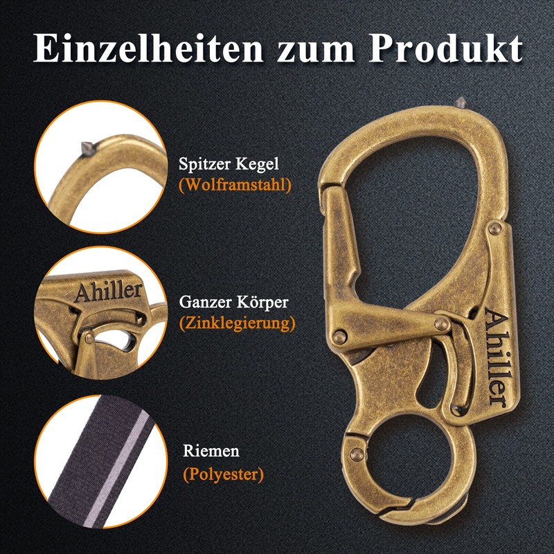 This carabiner with locking function is very popular with men, and many buy it as a gift for friends and family. With the added feature to break open windows, this keyring is now an even more helpful tool.