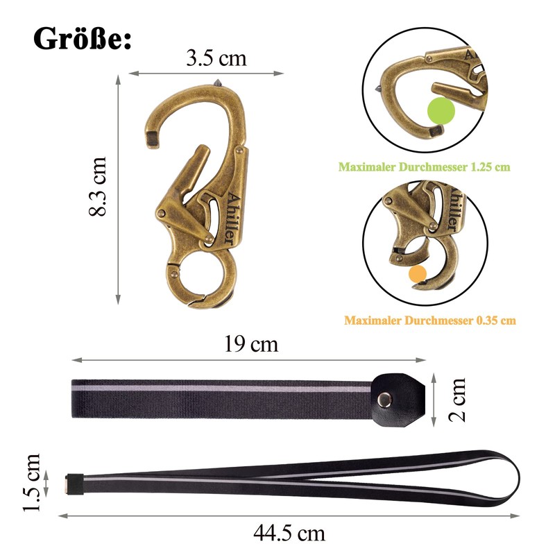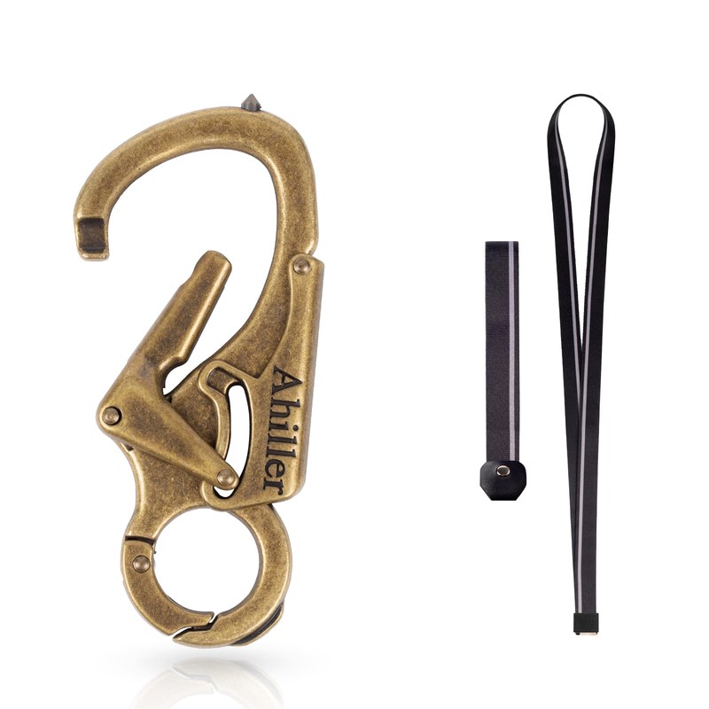Ahiller Carabiner Key Ring Snap Hook Clip Set, Alloy Keychain with 2 Lanyards [Brass]