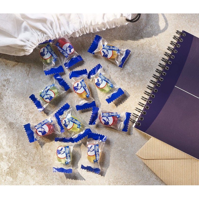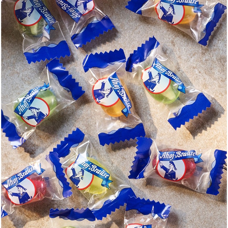 Ahoi Brause Hard Candy with a filling of the best fizzy powder (the powdered version of sour sticks also called sherbet ) that most Germans grew up with. Let the Candy melt in your mouth enjoy the sweet Taste of Lemon, Orange, Waldmeister and Rasberry and then taste the fizzy taste of the sherbet!