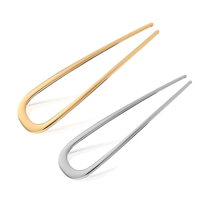 AHSMY Metal French Hair Pin, U Shaped Hairpins for Thick Hair, Hair Accessories, 2 Pcs Twist Hair Pin for Women Girls (Gold/Silver)