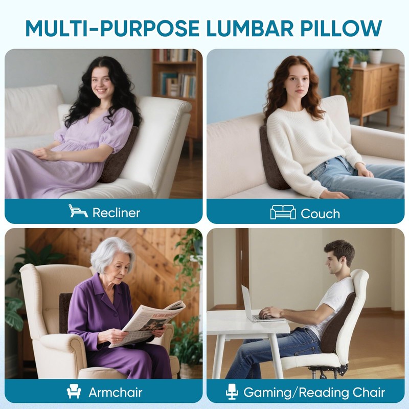 - Versatile Lumbar Pillow: Shaped to follow the natural curve of your spine, this orthopedic back cushion for couch features a thickened lower-back section that provides firm support and helps relieve pressure on your back and hips. Ideal for those with scoliosis, sciatica, or lower back pain.