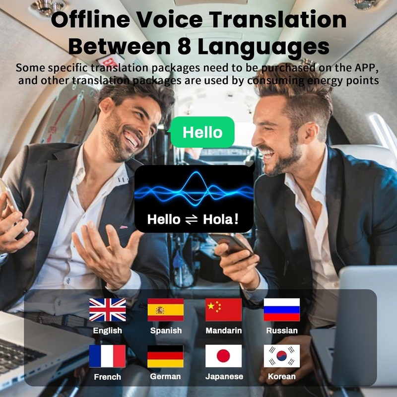 - 【144 multi-language translation】High-precision 144-language translation headset, real-time two-way translation, including Chinese, English, Japanese, Korean, Russian, German, French and Spanish. (Note: Offline translation function requires additional purchase)