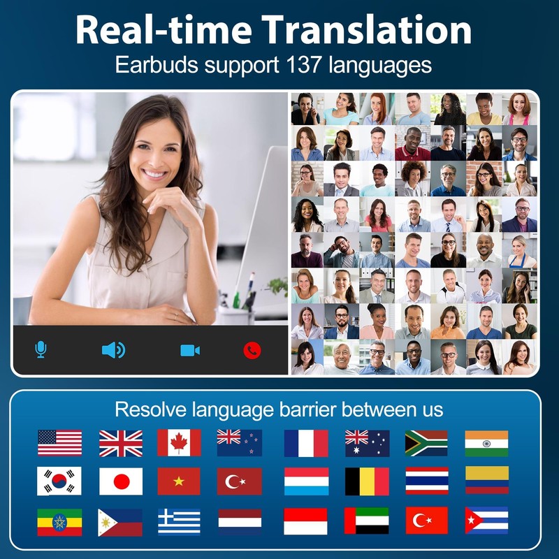 - 【HIGH-DEFINITION AUDIO 4-IN-1 TRANSLATION EARBUDS】These multifunctional translation earbuds combine translation,music,calls,noise cancellation into one device.With powerful noise cancellation and exceptional sound quality,they ensure clear music and calls even in noisy environments.Whether you traveling,attending meeting,or socializing,these earbuds seamlessly adapt to any situation