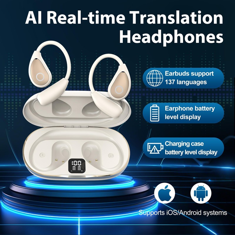 - 【STYLISH COMFORT DESIGN】Our Earbuds Feature An Ergonomic Design For Comfort During Extended Use, Providing A Non-Restrictive Wearing Experience.These Open-Ear Translation Earbuds Are Durable And Convenient,Making Them Perfect For Long Meetings,Travel,Or Personal Use