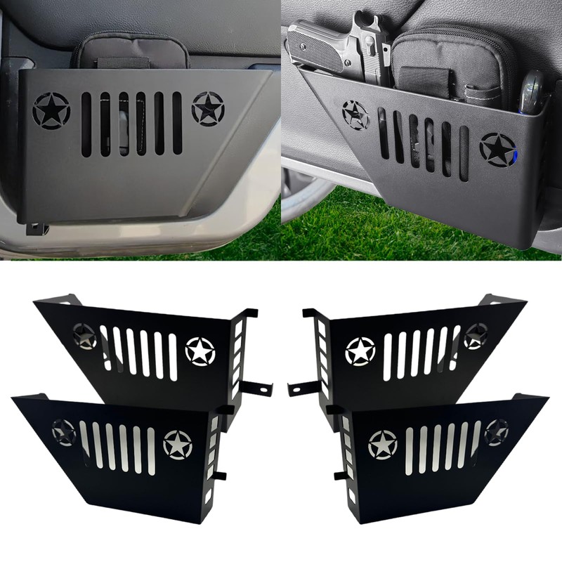 AIAUTOAIEV Metal Front Door Storage Box Grille Hollowed-out Pattern Side Insert Organizer Box Pockets for 2007-2018 Jeep Wrangler JK 2/4 Door Grille Front Face Design (JK-FRONT-DOOR-BLACK)