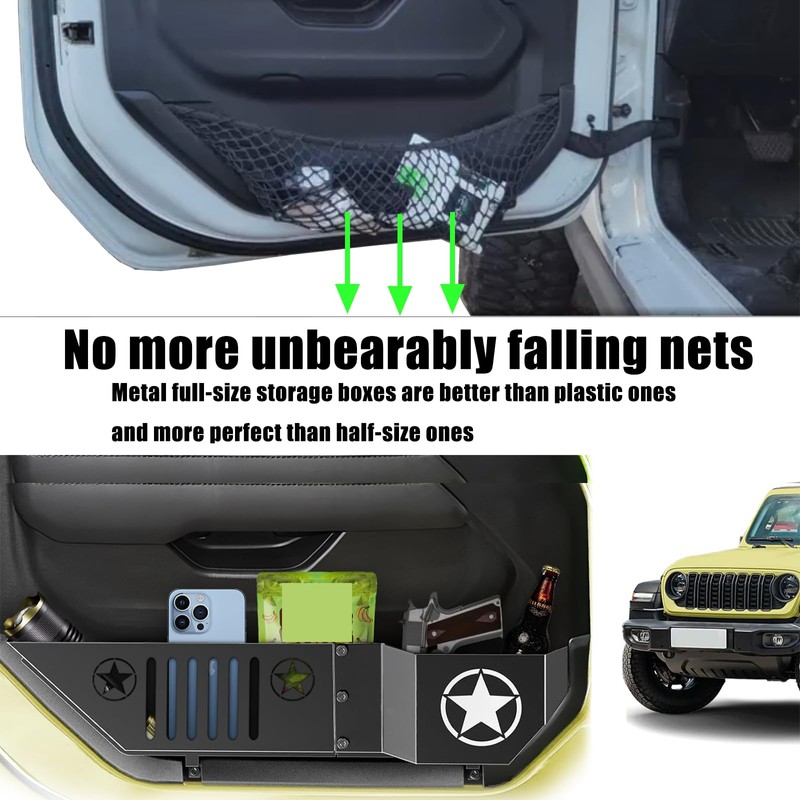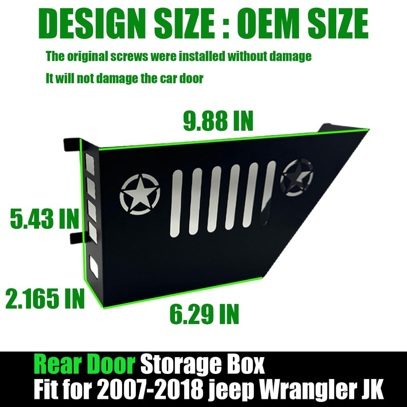 • JK door storage are designed for 2007-2018 Jeep Wrangler JK 2/4 doors.(NOT FOR JL.The requirements of JL are longer and larger.)