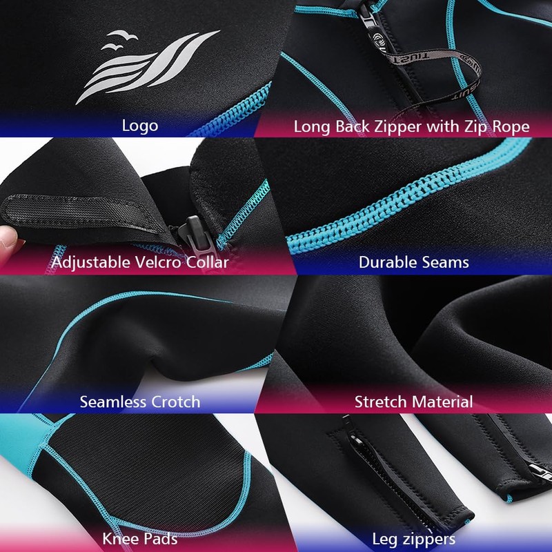 - 【Adjustable Collar & Easy Zipper】 Our back zipper full wet suit for women features an adjustable collar, providing a comfortable fit and minimizing water and sand entry. This design also enhances buoyancy and prevents the tight feeling often associated with snug necklines. The smooth back zipper and zipper rope allow for effortless opening and closing, making it easy to don and doff the wetsuit.