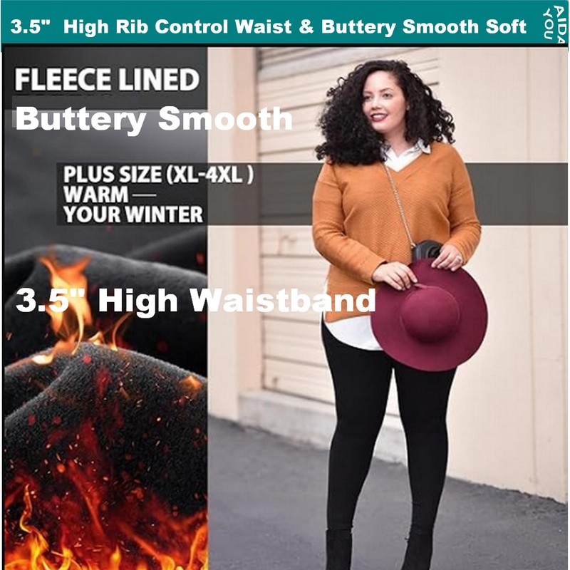 AIDAYOU Women's Thicken Thermal Fleece Lined Leggings Plus Tummy Control Stirrup, 3XL - Ribbed High Waist - Buttery Soft Size 24
