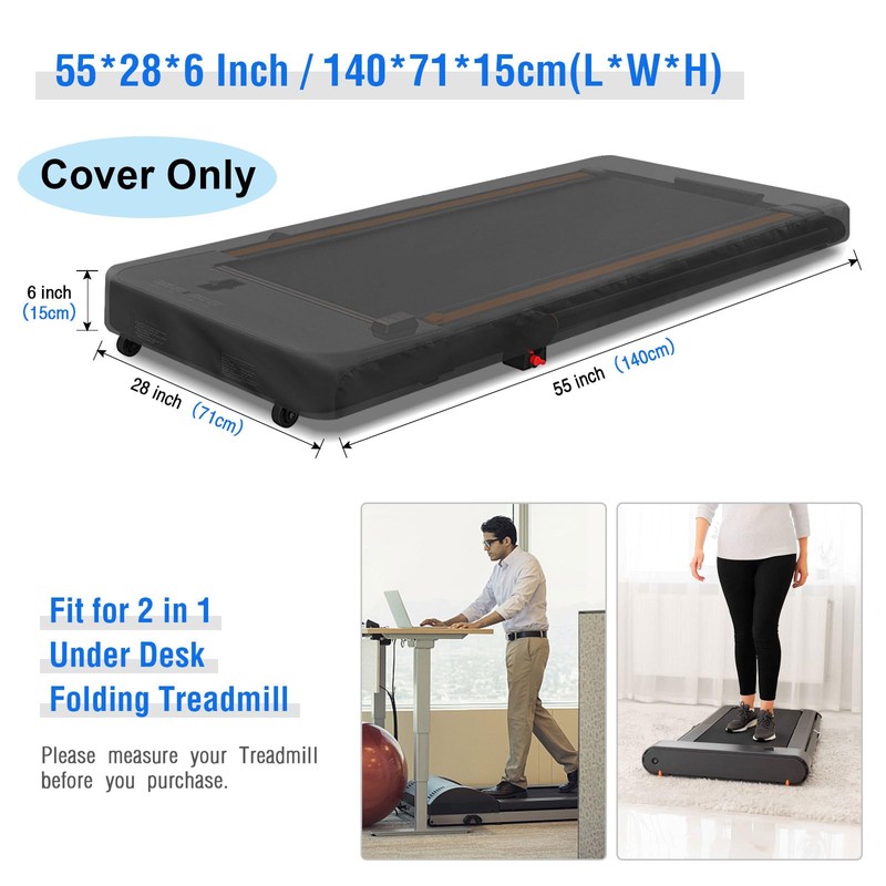 - Funda para cinta de correr debajo del computadora: 55 pulgadas de largo x 28 pulgadas de ancho x 6 pulgadas de alto, adecuada para cintas de correr plegables 2 en 1 debajo del computadora. (Mide tu cinta de correr antes de comprar, incluyendo la más larga, más alta y más ancha).