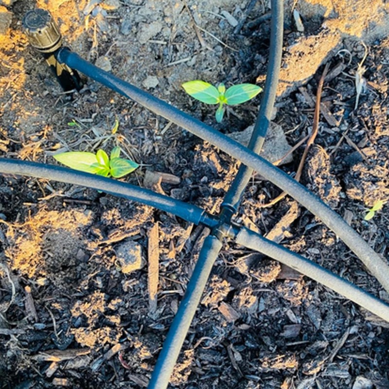 100FT Drip Irrigation Kit: The irrigation kits include 1/4" 100FT drip irrigation tubing, 30pcs 1/4" adjustable drip emitters and 340pcs 1/4" drip irrigation barbed connectors