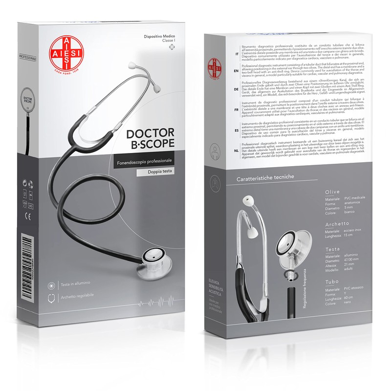 - Doctor B-Scope professional diagnostic tool, consisting of a tube that branches at the proximal end and can be placed in the outer ear via two olives. The distal end has a membrane and a two-bell head with an anti-shiver ring. Latex-free product